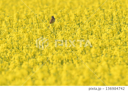 菜の花畑のホオアカ
