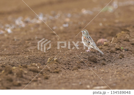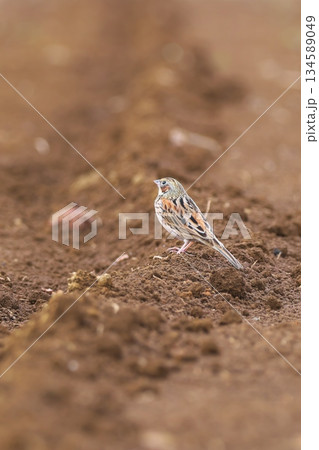 冬の畑に降り立ったホオアカ 野鳥