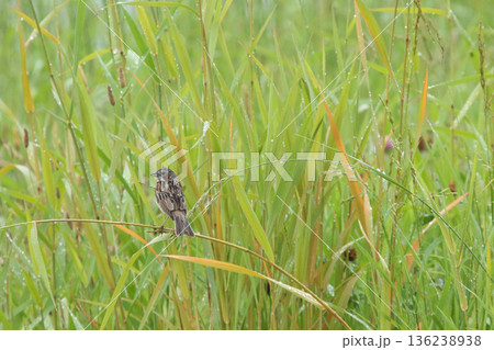 枯れ草に止まるホオアカ