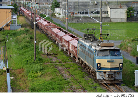 東海道本線を赤ホキ牽引のEF64-1034号機