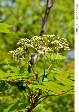 自然 植物 ホザキナナカマド、純白の花が涼しげで美しい