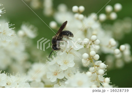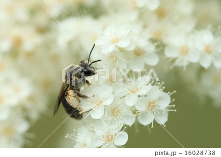 生き物 昆虫 ミツクリフシダカヒメハナバチ、ホザキナナカマドに多くの個体が群れていました①