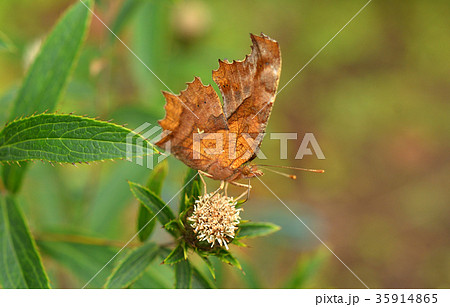 昆虫:キタテハ タテハチョウ科 植物:ホソバオケラ キク科