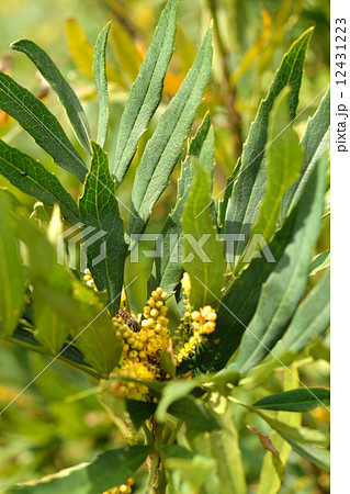 三鷹中原に咲く黄色いホソバヒイラギナンテンの花