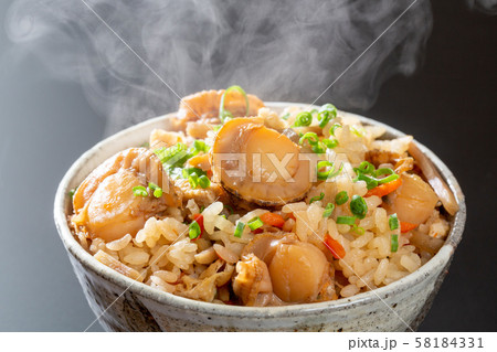 ホタテ貝柱の炊き込みご飯【2】(持ち上げ)