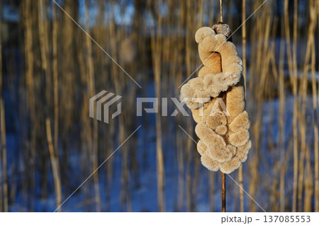 Cattails Reeds Marsh: Close-up of a cattail in a marsh during daylight for plant study and beauty.