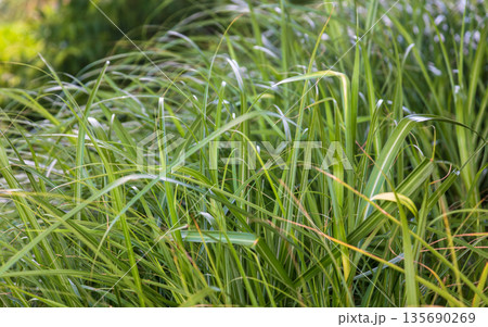 陽光下搖曳的茂盛綠草