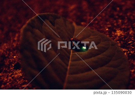 川岸の木の葉にとまって光る蛍
