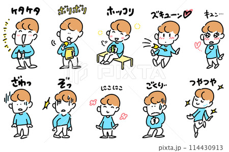 様々な感情をポーズであらわす男性のセット ホッコリ キュン