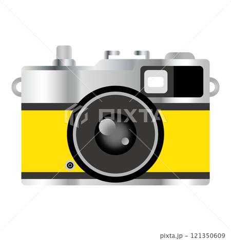 メタリックでレトロなフィルムカメラのイラスト 白バック