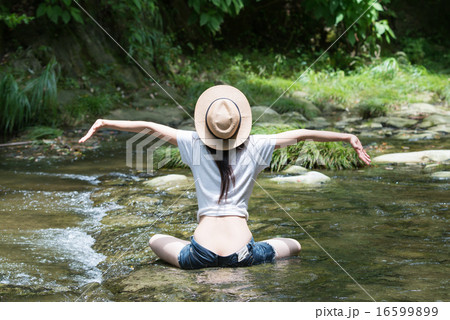 川で遊ぶ女性
