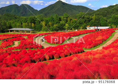 【香川県】晴天のコキアの紅葉(国営讃岐まんのう公園)