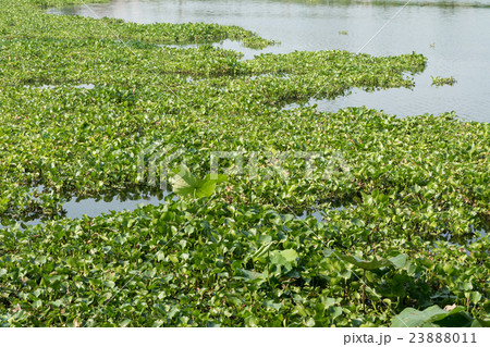 Water hyacinth or Eichhornia crassipes plant, Green leaves in pond