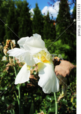 Iridaceae non-symmetrical asymmetrical white flower close-up