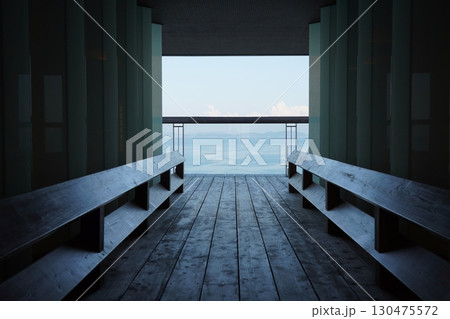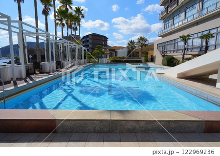 淡路島のリゾートホテルにある誰も人がいないプール【2月】