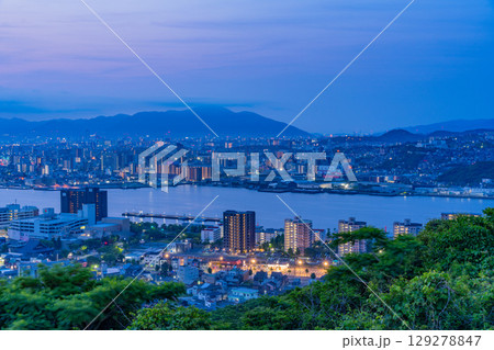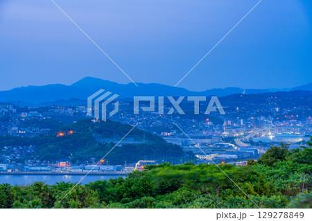 【福岡県】高塔山から見る北九州市海沿いの街並み 夜明け前