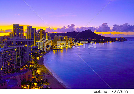 ハワイ 夜明け前のワイキキビーチ