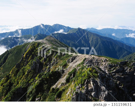 中央アルプス 千畳敷カール 長野県 三ノ沢岳へ至る稜線とエビの尻尾