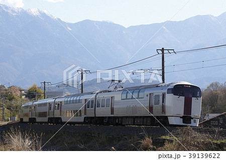 残雪の八ヶ岳をバックに走る中央線215系ホリデー快速ビューやまなし号