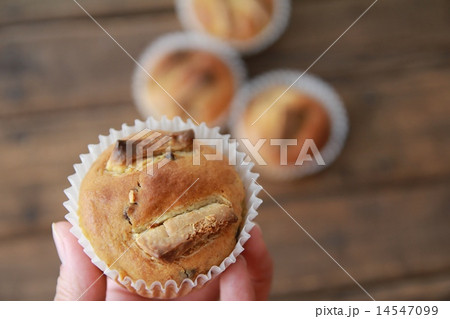 手作りのホワイト板チョコマフィンを持つ手