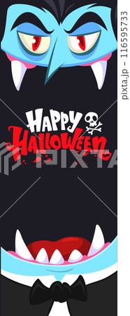 Happy Halloween. Count Dracula face avatar. Cute cartoon vampire character with big open mouth, tongue, fangs.