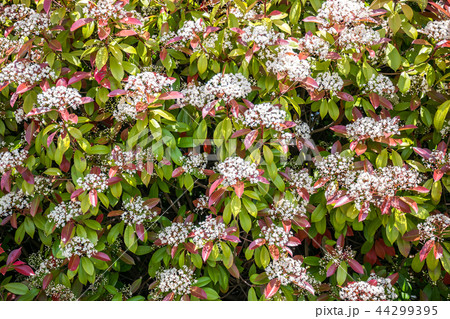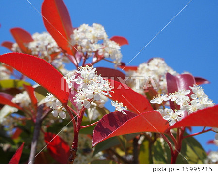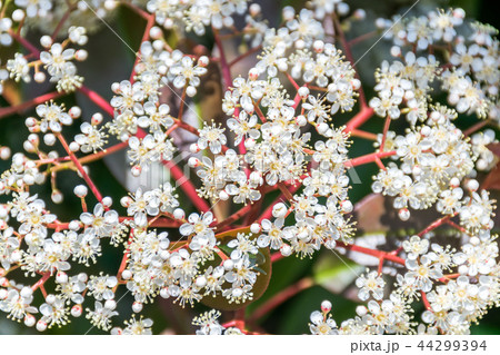 レッドロビンの白い花が咲いています。学名はPhotinia ×fraseri 'Red Robin