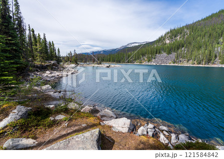 Horseshoe Lake in Jasper National Park, Alberta, Canada. Canadian Rockies summer landscape.