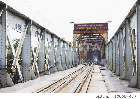 ベトナム ハノイ旅行時のロンビエン橋の奥行きがある単線の線路
