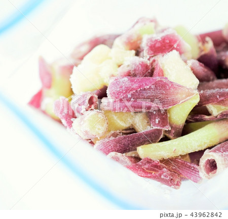 冷凍したミョウガ、袋入り、白背景、冷凍野菜