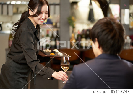 レストランでサービスをするアジア人の女性
