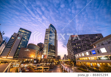 日本の川崎都市景観 川崎駅前やミューザ川崎などを望む