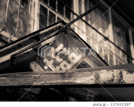 錆びて古くなった看板の手描きイラスト