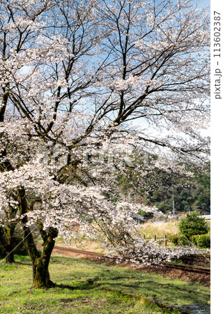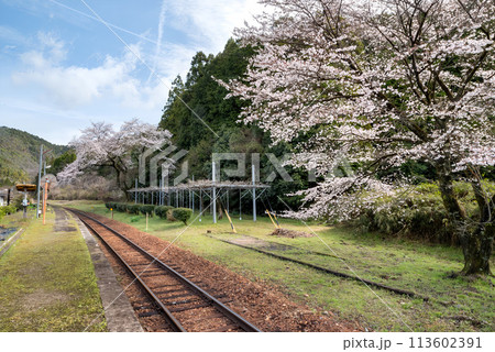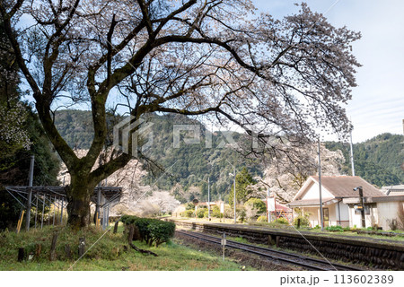 春の駅に咲くソメイヨシノのサクラ