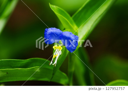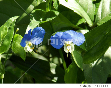 6月の梅雨の時期に咲いた青い花のツユクサ