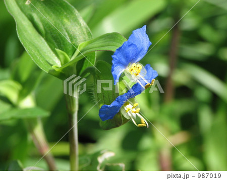ツユクサ 青い大きな花弁と扇型の萼 夏の花