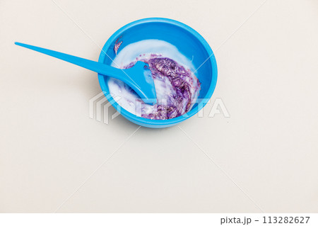 Two plastic bowls with bleach hair dye