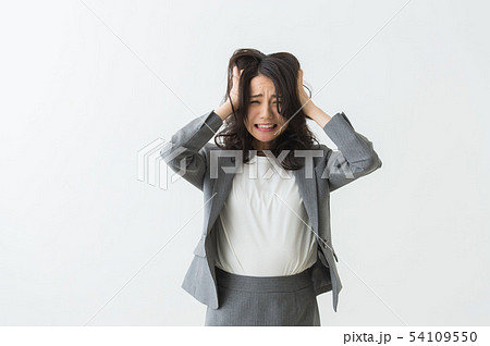 ショックのあまり両手で頭を抱え白目になる女性のイラスト