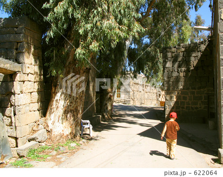 古代都市ボスラ遺跡と少年の後姿