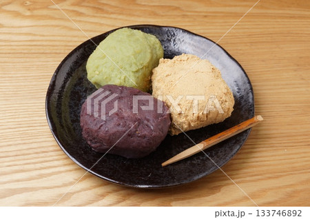 おはぎ、ぼた餅(あんこ、きな粉)皿、楊枝付き