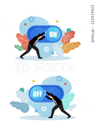 Businessmen turn on and turn off switch. Start or Shut down business.