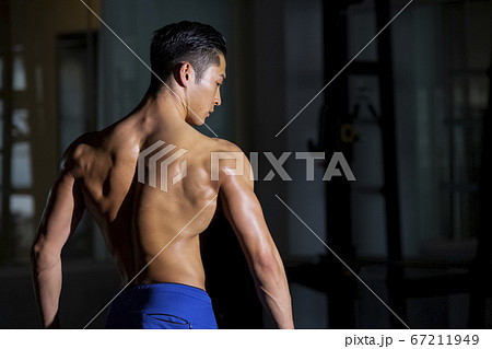 ボディビルダー 若い男性 後ろ姿 広背筋 裸