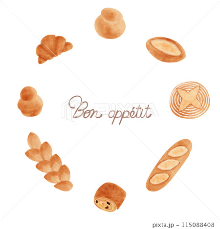 Bon appétit 色々なフランスのパンが輪になったフレーム素材