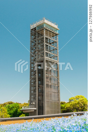 青空に映えるランドマークタワー 青空の広がる浜名湖ガーデンパーク