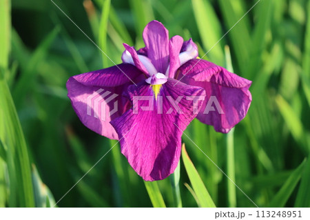 初夏の水辺で鮮やかな色彩を放つ花しょうぶー八