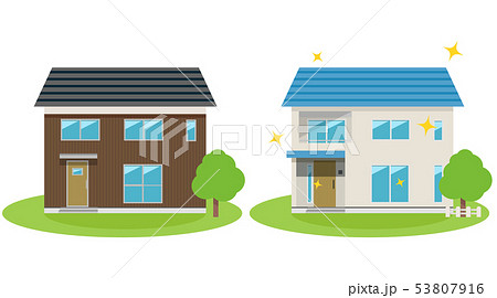 ゆるめシンプルな綺麗な家とボロボロの家 線画