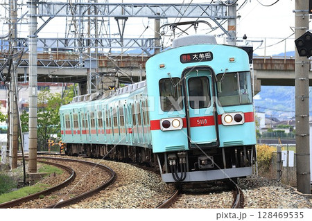 西鉄 5000形電車(アイスグリーン50周年記念ヘッドマーク付き)