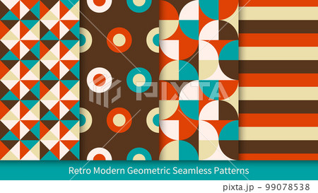 レトロカラーの抽象的幾何学模様のシームレスパターンセット