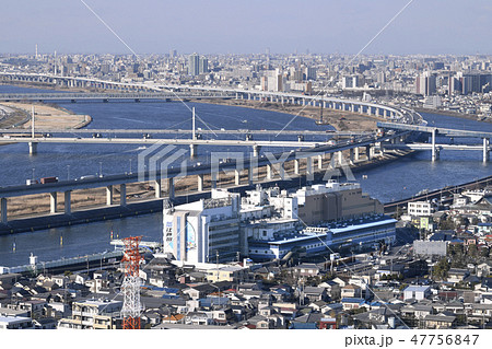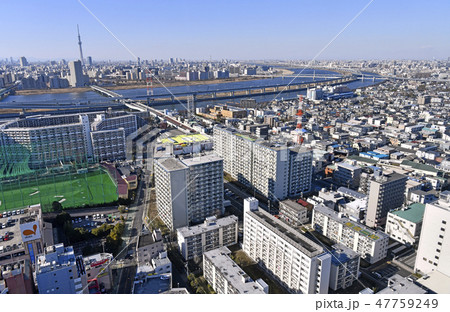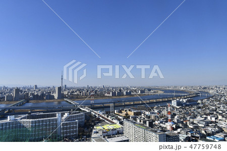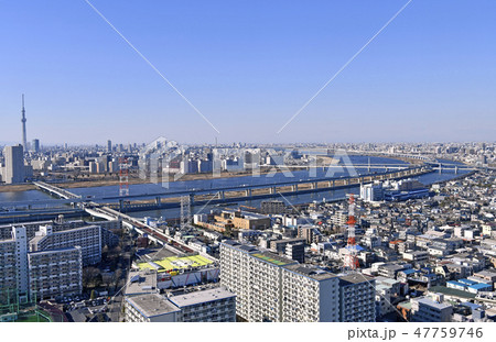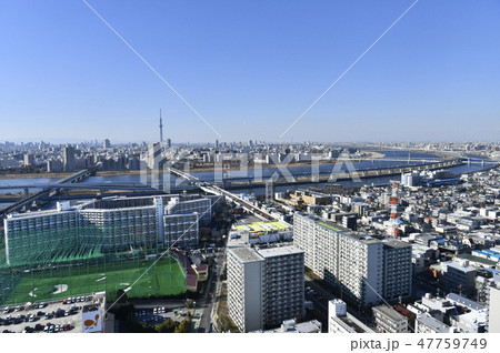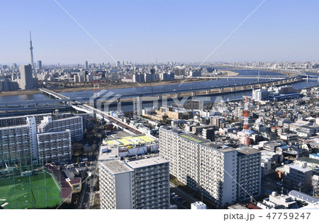 日本の東京都市景観 荒川やボートレース江戸川などを望む