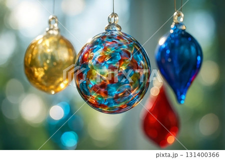 Glass Ornaments on Christmas Tree for Holiday Decoration and Festive Design