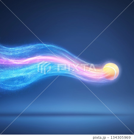 Tennis banner with dynamic colorful energetic light trails. Tennis ball wallpaper